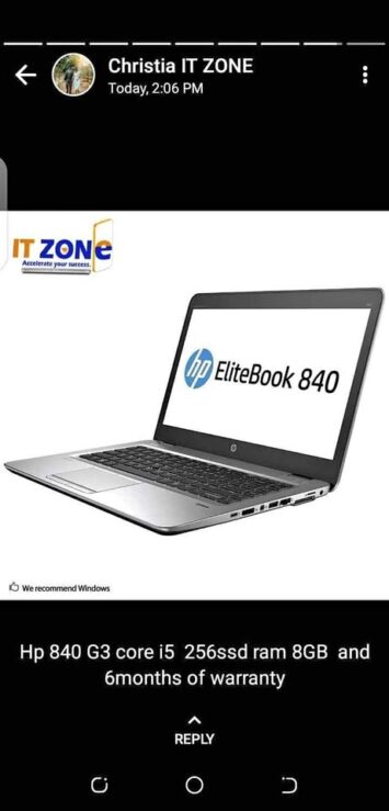 HP EliteBook 840 15 inch(Big Screen) Core :i5 8GB RAM 500GB HDD Price: 250,000RWF negotiable