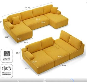 U-Shaped Modular Sectional Sofa Couch, Convertible 5-Seater Boneless Couches for Living Room