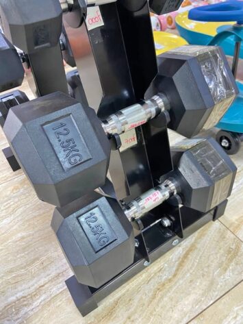 12.5kg Hex Dumbbell Set With Vertical Rack Stand