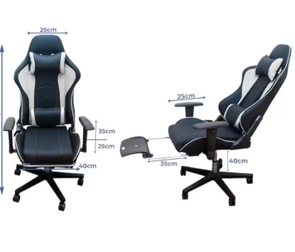 Video gaming chair with headrest, lumbar support, seat cushion, andadjustable 3D Armrests, Adjustable height, Sturdy five-star base360° rolling wheels, -Black and White
