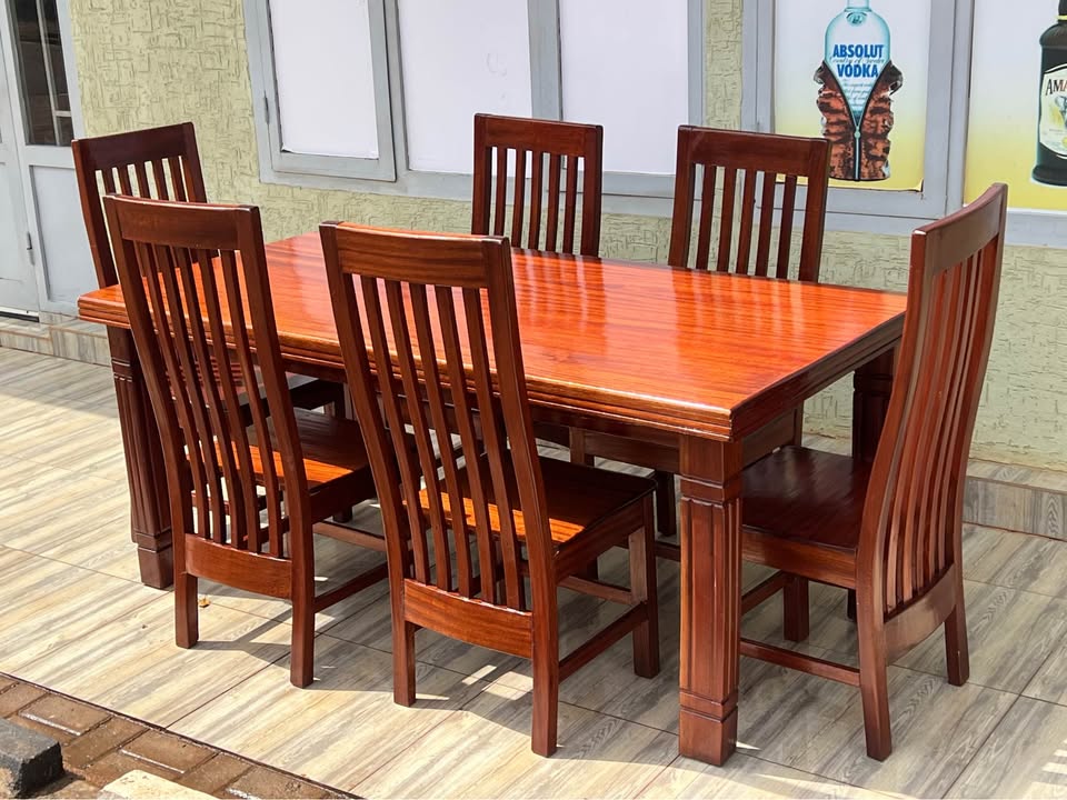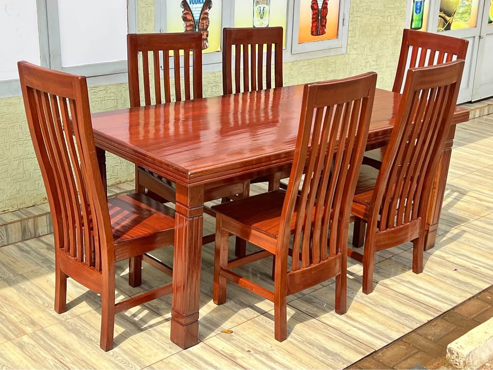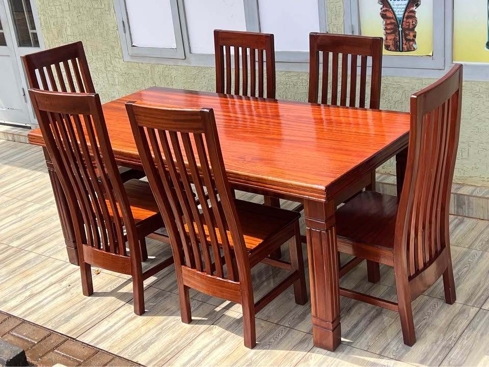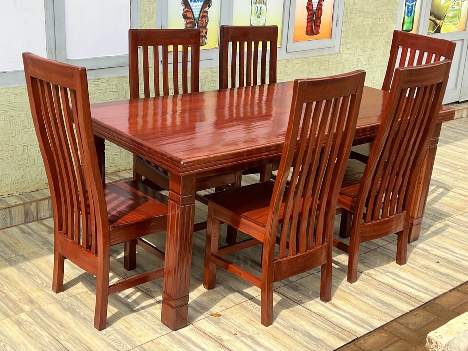 Dining Table made in Ribuyu with 6 chairs, they are almost new✅ Price: 350k Contact: [hidden information] Location: Gisozi KG 774 street