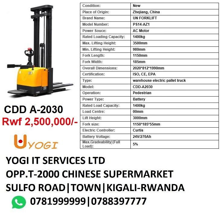 ELECTRONIC PALLET TRUCK 1400KG CAPACITY