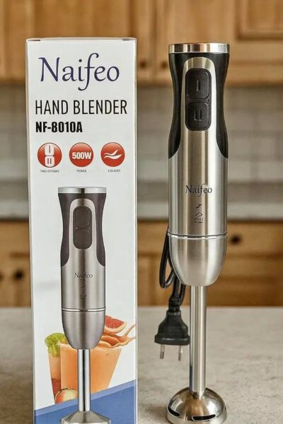 Naifeo Stainless Steel Hand Blender 500W Copper Motor Stainless Steel 2 Speeds 4 Sharp Powerful Blades Multi Use Easy to Clean